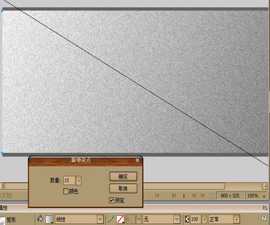 1.先建立一个宽800高310的文件(我是这样做D,你也可以自由设置)。在画一个同文件大小的矩形。属性为:充填(灰色)充填类别:(线性渐变)。在点效果→杂点→新增杂点。属性为(数量15)得到效果如图: