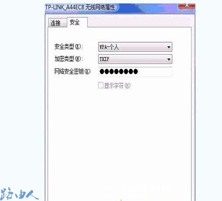 在该信号上右键,选择属性—安全,将安全类型、加密类型及安全密匙修改为和无线路由器中设置相同即可。